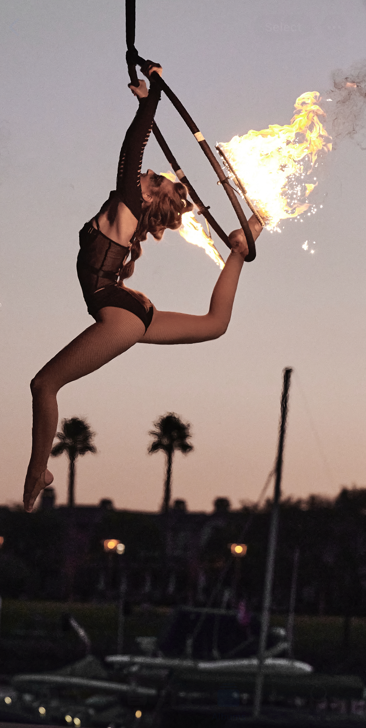For an unforgettable event, inquire about our stage shows with impressive special effects and choreography. Our insured artists prioritize safety, accompanied by trained fire safety technicians to ensure the well-being of guests, venues, and artists during fire displays.